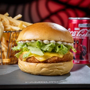 Pão da casa, frango empanado 100 g, queijo prato, alface e maionese defumada.