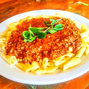 Strogonoff bovino. Acompanha arroz e batalha palha